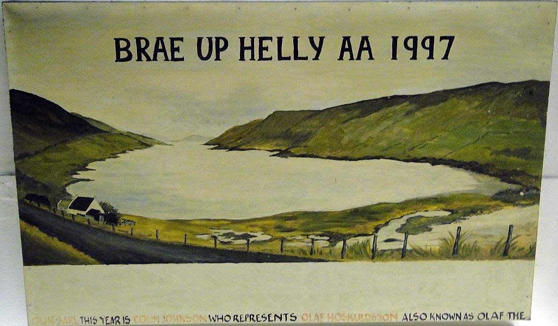 Some of the Bill Heads. I could not photograph them all as some were partially obscured. They would need to be removed, cleaned and photographed in natural light to do them justice, but they date back to the beggining of the senior Delting festival which started in 1981 and most are still in excellent condition. Interesting to see the 'Brae' Up Helly Aa changed to the 'Delting' Up Helly Aa from 2001-2002.